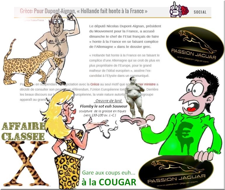 Même pendant la crise, des fois Régime trop riche en graisse on pneu euh… peut avoir envie d'une... NOUVELLE JAGUAR Comme dirait l'autre Un jaguar qui essaierait de s'accoupler avec une euh… "Jaguar ". prouverait que l'homme n'a pas le monopole de la connerie Quoique en parlant de mono euh... monopole et de connerie. Y'a pas de quoi avoir honte, et pourtant... Envie de TOI maintenant sur la table... de la cuisine ou dans la salle à manger Sur le comptoir ou assis par terre, contre le mur du salon ou sur la terrasse. Te prendre dans mes mains. Sentir ta chaleur et ton odeur dès que je te serre. Tu me manques mon p'tit café...