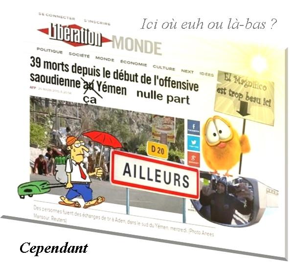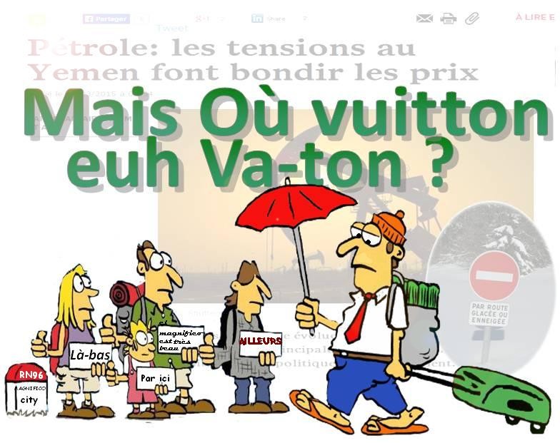Entre les élections et toutes les fées d’hiver Ça Yémen nulle part… Mais, il ne faut pas désespérer… Les voyages forment la jeunesse et déforment les valises ! C’est quand con euh qu’on va Où ? Il est beaucoup plus intéressant de regarder où l'on ne va pas pour la bonne raison que, là où l'on va, il sera toujours temps d'y regarder quand on y sera.