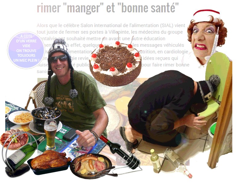 Dans le thème "Les biens faits (pour toi) de notre SANTÉ" Il faut manger comme un homme en bonne santé et boire comme un malade … Mets (menu du jour) euh mais SANS SE RENDRE MALADE Pour votre sans euh santé à consommer avec... modération et quelques amis gourmands ... De toute façon, c'est que du bonheur... La vie en rose, c’est à partir du demi (à la vôtre) siècle : cir’Rose, ostéopo’Rose, arth’Rose, név’Rose, artériosclé’Rose, fib’Rose,etc... EL MAGNIFICO est comme tout le monde. Il appréhende ses résultats de prise de sang tel un bachelier devant le panneau d'affichage des euh… "reçus" Mêmes angoisses.... Pourtant les notes sont meilleures... Toujours plus élevées... comme quoi la vie n'est pas cirrh..euh six roses que ça ! Mais bon , c'est trop bon alors les vieux, ça s'ar'Rose !