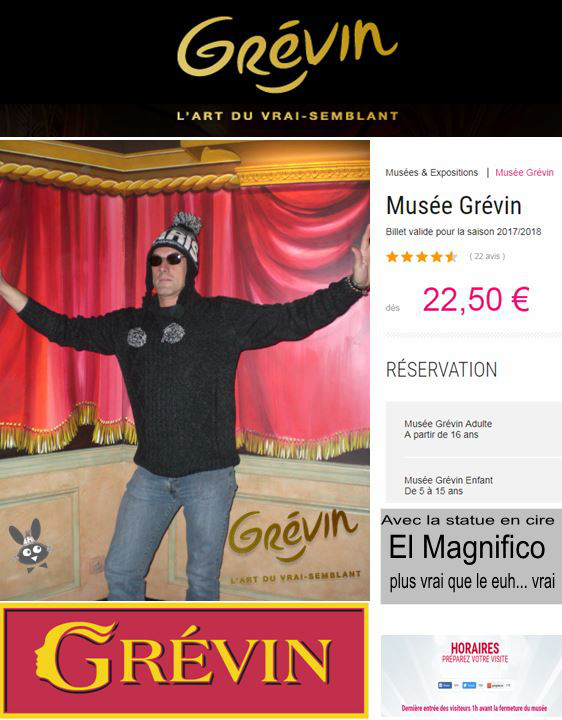 En exclusivité au Musée LA STATUE de euh… EL MAGNIFICO EN CIRE Triste sire Comme disait Marc HILLMAN Brigitte Bardot a sa statue de cire au musée Grévin Elle y apparaît plus vraie que nature... C'est idem pour votre dévoué serviteur. Et pour faire sans blanc euh...semblant EL MAGNIFICO est une vraie tête de l'ART ------- EL MAGNIFICO en cire plus vrai que euh...le vrai D'un autre côté (non pas de ce côté) on n'en a rien à ... cirer !