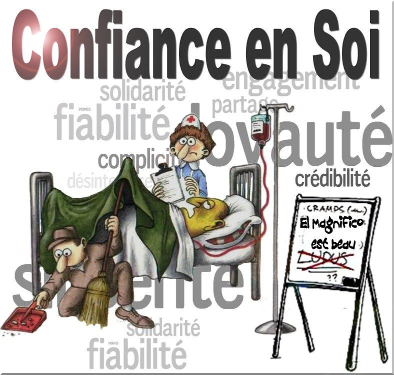 Confiance en soi Ou le foie euh la foi pendant la maladie En cette période de grippe, gastro. et virus GARDEZ le MORAL mais attention quand même... car "La confiance en soi c'est péter lorsqu'on a la diarrhée" mais un caleçon à moi ------- Sortez couvert et euh d'en certain cas ... découvrez vous... notamment avec la diarrhée C'est toujours désagréable d'être dans la m... ------- El Magnifico ne manque pas de confiance mais quitte à se faire chier autant utiliser les accessoires à pot euh appropriés ------ Avec la participation du célèbre Docteur Houpsssseuh pour guérir le mâle de chien