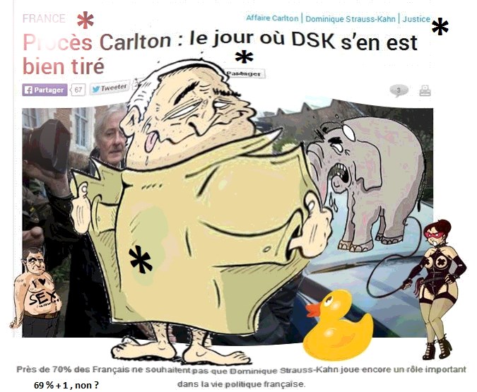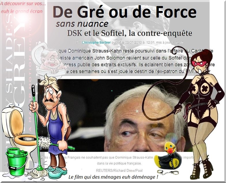De coupable à innocent DSK s'en tire bien sans se faire euh... tirer. Cependant (après surtout) près de 70% des français, cela aurait pu être 69 ... ne souhaitent pas queue euh que DSK joue un rôle... important dans la vie peau euh politique Alors pour ne pas se ...TROMPER * DSK fait le ménage et nuance de gré ou de force. Le père vert se tourne vers le 7ème art après avoir atteint le 7ème ciel. Entrer sans frapper Euh frapper avant d’entrer dans la chambre rouge ---Avertissements--- Attention certaines scènes peuvent heurter la sensibilité des plus jeunes et des euh moins jeunes. Le Livre à ne pas maître euh... mettre entre toutes les jambes euh mains...