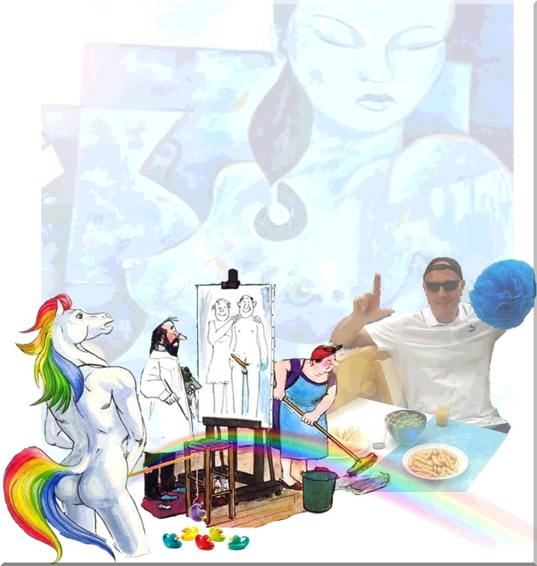 ---Avec la participation des couleurs de la vie--- Ça boum avec El Magnifico Pour faire passer une idée, Une bombe de peinture est plus efficace qu'une bombe au napalm. ------ Mélange de couleurs ------ Il y a trois choses que j'ai beaucoup aimées sans rien y comprendre La musique, la peinture et les femmes. et même les femmes de ménage. *Violé, c'est quand on ne veut pas et moi je ne veux pas avec la euh...messieurs-dames en rouge