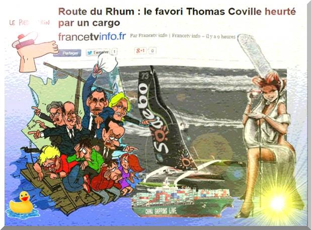 Du chouchen aux... rhums en passant par la route de la mère euh mer et même pas peur car... Tous les chemins mènent aux rhums. Le Nouveau goût (hic) de l'aventure. Avec prise de...euh risque. Ce n'est pas faux... Comme disait là haut euh Lao Tseu en descendant en bas. "Celui qui a inventé le bateau a inventé le naufrage." C'est encore plus vrai actuellement... car en gardant le cap,on frôle la cata euh catastrophe... Naufrage Assuré Imaginez ... Flamby, Sarko, La Marine et toute la clique sont sur un bateau. Le bateau coule. Qui est sauvé ? LA France et NOUS par la même occasion. C'est le Pied ( marin) , non ? Le changement c’est maintenant ! ---Dans la série catastrophe...--- CARGO de NUIT et c'est les ...euh ennuis. Souhaitons tout de même "Bon courage aux autres navigateurs."