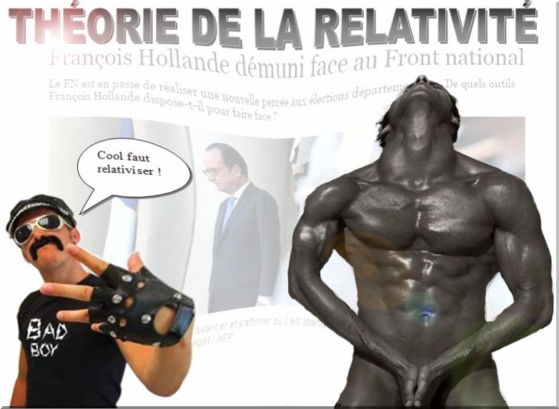 Comprendre la théorie de la relativité. Tout le monde connaît de nom la théorie de relativité, mais peu de gens savent l'expliquer simplement C'est pourquoi EL MAGNIFICO va euh....essayer de le faire avec... Deux narcotrafiquants arrivent dans un ranch en amenant avec eux un prisonnier. A l’intérieur, il y a un colosse noir de 1,98m et 140 kilos de muscles, Le sot euh sosie de Mister T Dis donc, Noiraud, le chef demande que tu encules ce prisonnier pour lui apprendre à ne pas faire le malin avec notre bande ! OK, mettez-le dans un coin je m’en occupe tout à l’heure ! Quand les narcotrafiquants s’en vont, le type implore : S’il vous plaît, Monsieur Noiraud, ne faites pas ça, si vous m’enculez, je suis déshonoré et ma vie est finie, ayez pitié pour l’amour de Dieu. "Ferme ta gueule, pédé, et tiens-toi tranquille." Un moment plus tard, les deux narcotrafiquants reviennent avec... un autre prisonnier.