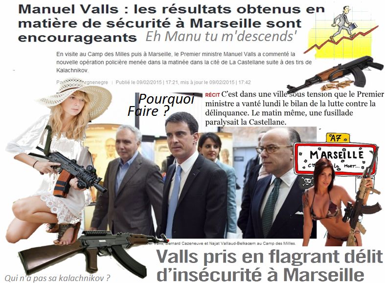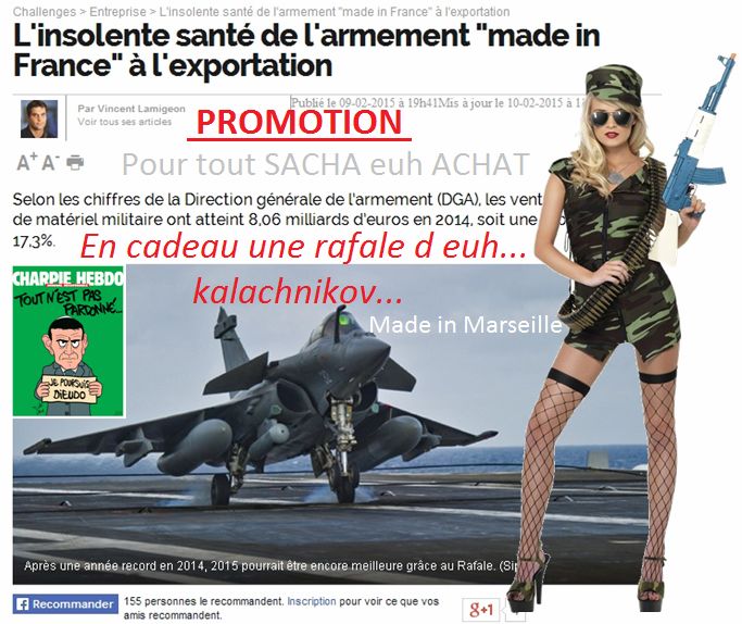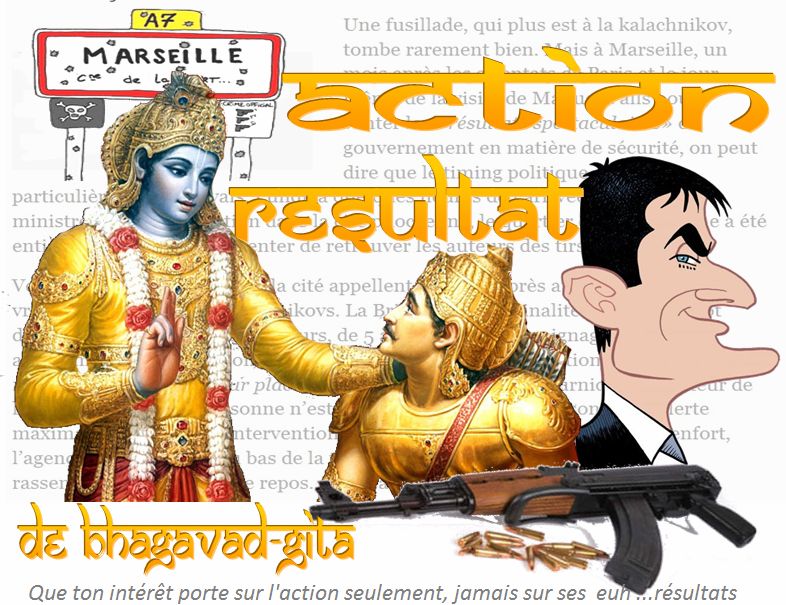 Le manuel de la valse se rend à Marseille pour saluer les résultats sur la sécurité Encourageons notre premier sinistre dans sa tâche Et comme il est écrit dans le "Bhagavad-Gita " Que ton intérêt porte sur l'action seulement, jamais sur ses résultats. Quoique ....on ne sait pas trop quel résultat il attend... Peut-être cela ( voir ci dessous) "Fais la Paix mais hachette euh achète des armes Made in France"