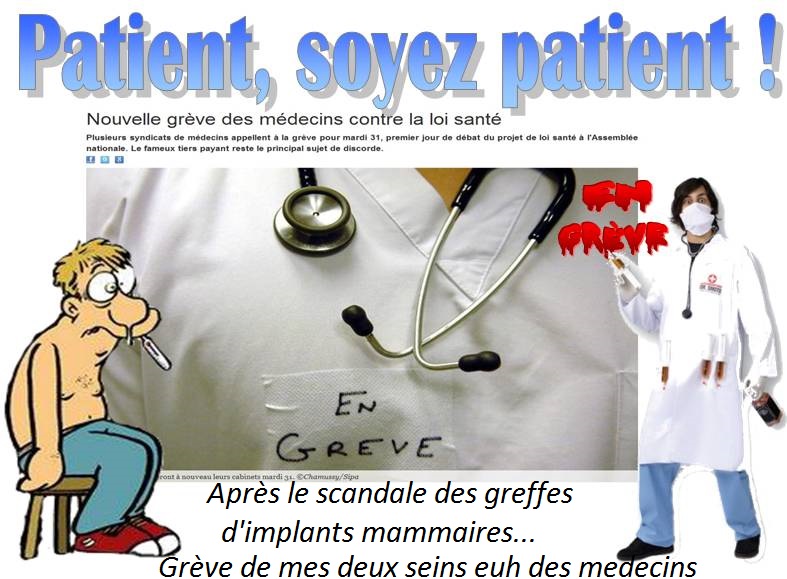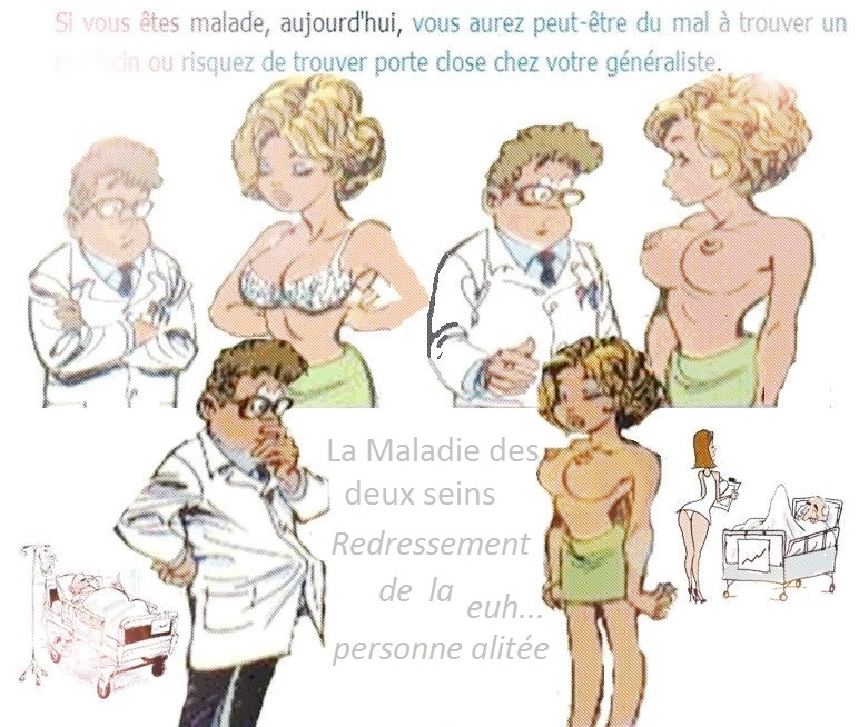 En période de greffe euh de grève des médecins Apparition d'une nouvelle maladie qui touche, principalement, pour l'instant les deux seins des femmes "Le redressement vers le haut" Non, il ne s'agit pas d'un plan euh d'implants mammaires EL MAGNIFICO enquête sur ce sujet pendant que... Le Médecin se dresse contre la marie seule toute raide. D'après les premières études, il s'agirait d'une... Maladie con euh contagieuse. Le Mâle s'attaque aussi aux zob euh....aux hommes. Entraînant un développement de certaines parties... En attendant le traitement de choc, la ministre sans thé ,nous rassure... Bientôt ,on pourra… Opérer sans anesthésie du tout. le chirurgien portera des" boules quies ". Non, ce n'est pas un dialogue de sourd... Car sachez que même Un gynécologue sourd doit être capable de lire sur les lèvres ---Culture générale pour les non-généralistes--- comme disait John Steinbeck J'en conviens, nous sommes faibles, malades, laids et queue euh querelleurs, mais si nous n'étions que cela,