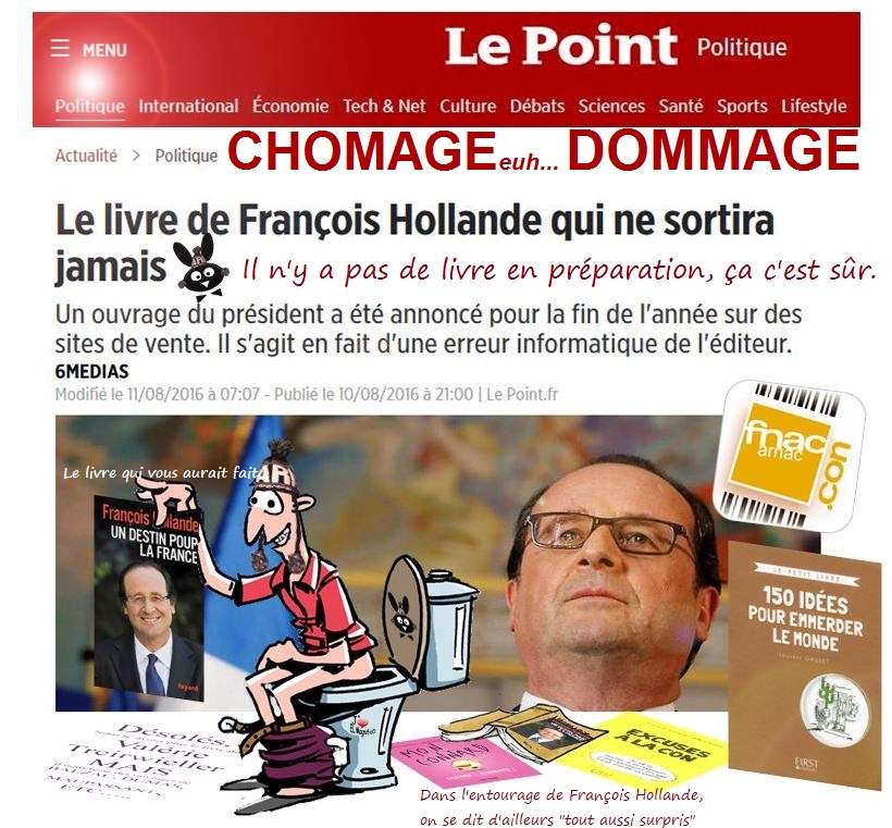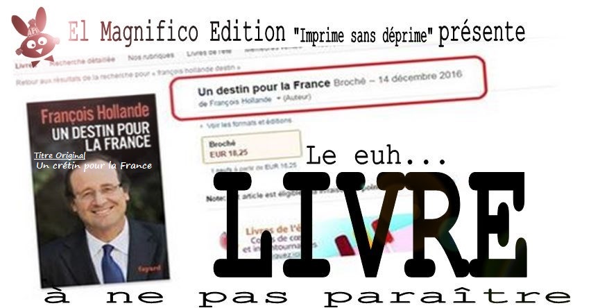 Paraître ou disparaître ? Le livre qui ne va jamais paraître... Dommage pour tous les fervents et ferventes de LIT euh… Lis tes ratures "Un Crétin pour la France" Le titre original Mais comme disait Weihui (bien pour jouer au scrabble) “C'est pour cette raison que tu deviendras un bon écrivain. Les écrivains enterrent leur passé sous les mots.” En attendant, Flamby nous enterre ...